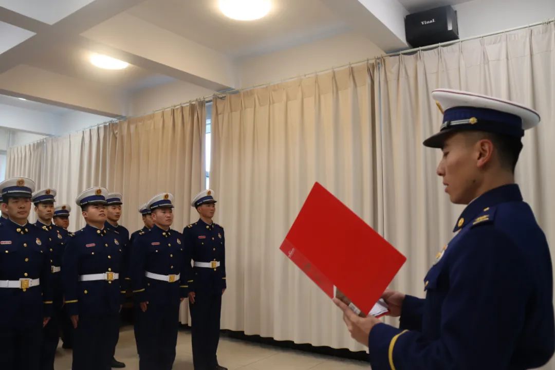 “邢猛、白杰、白利群等10名同志,在本月工作中能够严格要求自己,表现优异、进步明显,经班级推荐、队务会研究、党支部审议,决定评选以上10名同志为10月份红星消防员……”