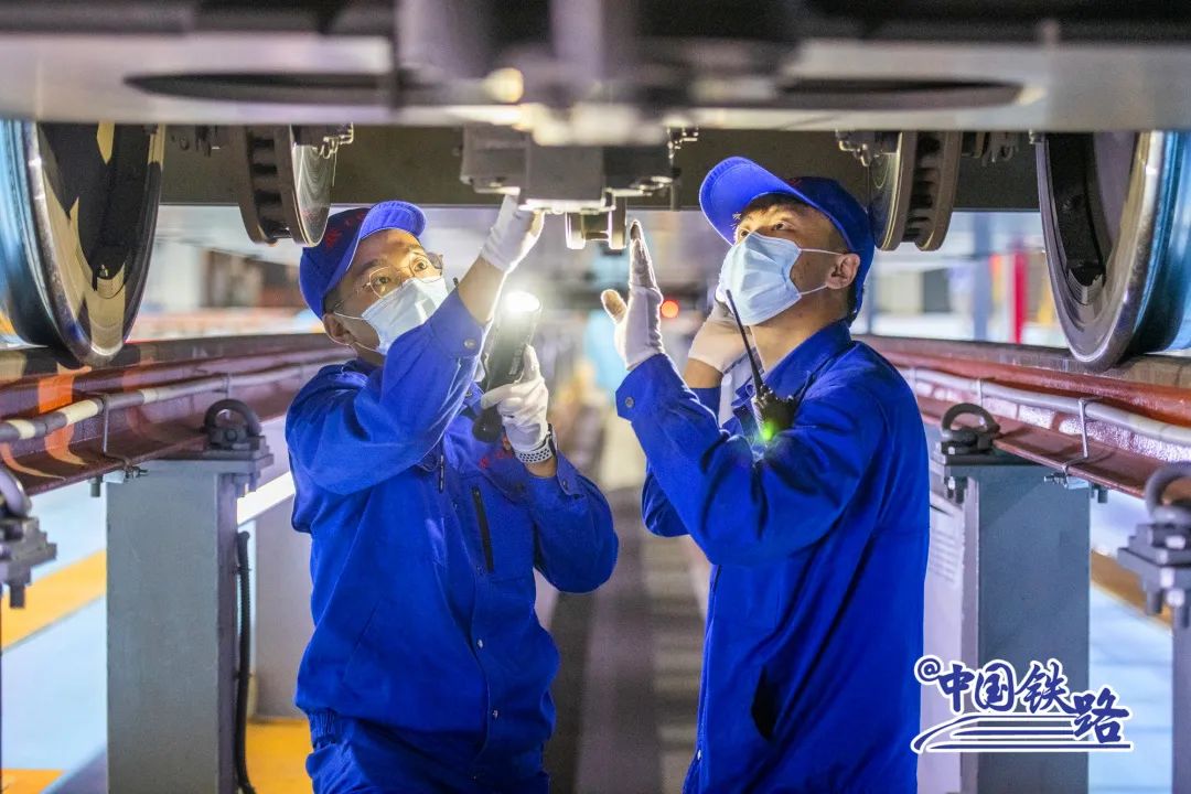 深夜,他们穿行在动车里地勤机械师们