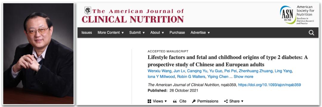 REF: Wang W, Lv J, Yu C, et al. Lifestyle factors and fetal and childhood origins of type 2 diabetes: A prospective study of Chinese and European adults. Am J Clin Nutr. 2021 Oct 26:nqab359. doi: 10.1093/ajcn/nqab359.