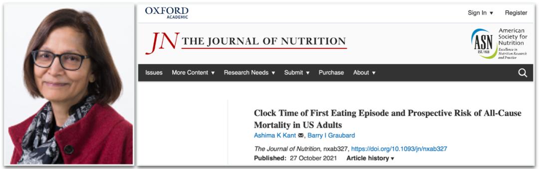 REF: Kant AK, Graubard BI. Clock Time of First Eating Episode and Prospective Risk of All-Cause Mortality in US Adults. J Nutr. 2021 Oct 27:nxab327. doi: 10.1093/jn/nxab327.