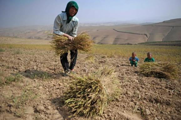 宁夏同心县河西镇顾家庄子农民崇玉花在田间收获“元元”(一种油料作物)。因为干旱缺水,一亩地只能收获20多斤(2011年8月12日摄)。新华社记者王鹏摄4