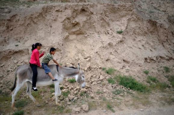 在宁夏同心县田老庄乡解放新庄村,两个孩子准备去放驴(2011年8月11日摄)。为了使工程早日发挥效益,让西海固群众喝上甘甜的黄河水,自2002年开始,宁夏分社多次安排记者调研了解情况,采写的稿件引起国务院领导同志关注,批示要求“妥善解决遗留问题,使这项工程发挥应有的效益,减少损失和浪费。同时要认真吸取教训”。