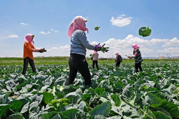 宁夏固原市原州区彭堡镇姚磨村村民在蔬菜基地收获圆白菜(2017年6月30日摄)。新华社记者王鹏摄记者在西海固地区的扎实采访,也为党中央了解基层真实情况提供了有益参考。2015年,宁夏分社采写报道,反映西部某地搞整乡推进,给了一个镇286万元扶贫资金,要求该镇当年新增育苗面积2860亩。但是,这个乡镇根本就找不到这么多地,只好开党委会研究如何才能“安全”地把这笔扶贫款花出去。