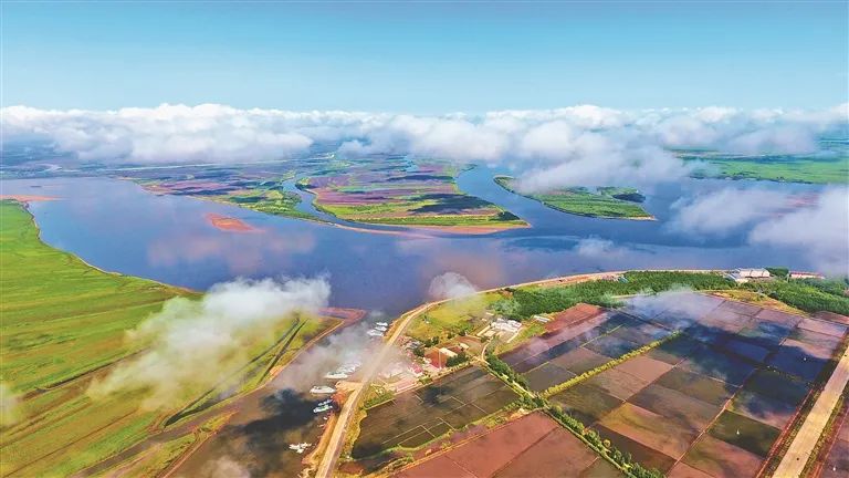 深秋的同江,天高云淡、满目金黄。站在三江口观光塔上远眺,两江同波、碧水无垠。