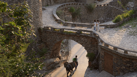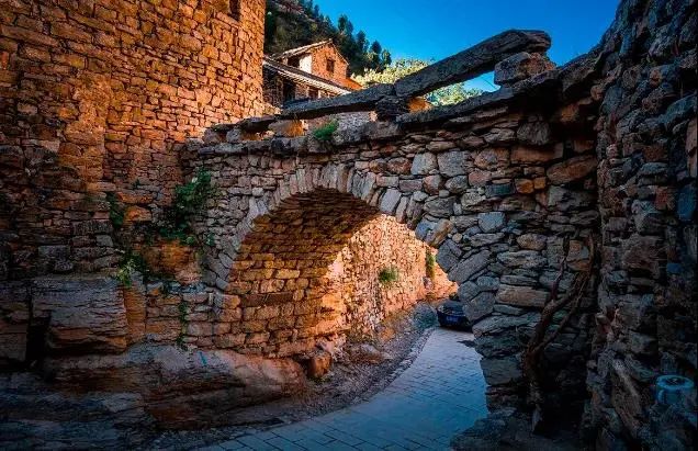 大大小小的石头被连接到一起,像在拼接一座积木桥,然而这座桥却十分牢固,它建成距今已经有500年的历史了,仍牢牢矗立在村中。桥上常常会有村民赶着驴经过,桥下的行人络绎不绝,整幅画面质朴却又温馨。