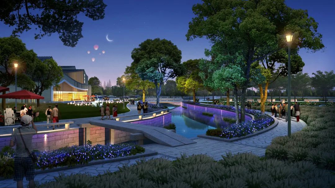 公园占地近2万平方米,整体设计如其名,紧扣荷塘月色主题,结合荷、月、流水等元素设计景观小品、铺装、廊架等,凸显现代江南的自然韵味和文化韵味。