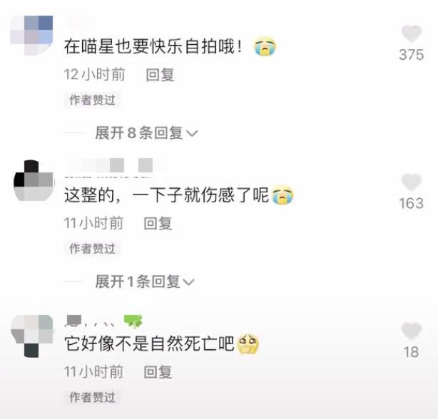 评论区更是哀声一片,“在喵星也要快乐自拍哦!” “太伤感了,破了大防了”。甚至还有人猜测它不是自然死亡,而是在自拍时不小心坠楼身亡。