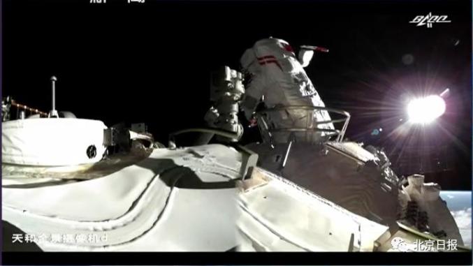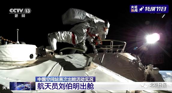 据中国载人航天工程办公室消息,北京时间2021年11月7日18时51分,航天员翟志刚成功开启天和核心舱节点舱出舱舱门,截至20时28分,航天员翟志刚 、航天员王亚平身着我国新一代“飞天”舱外航天服,先后从天和核心舱节点舱成功出舱,中国首位出舱航天员翟志刚时隔13年后再次进行出舱活动;王亚平成为中国首位进行出舱活动的女航天员,迈出了中国女性舱外太空行走第一步。两名出舱航天员将在机械臂支持下,配合开展机械臂悬挂装置与转接件安装和舱外典型动作测试等作业。期间,在舱内的航天员叶光富配合支持两名出舱航天员开展舱外操作。
