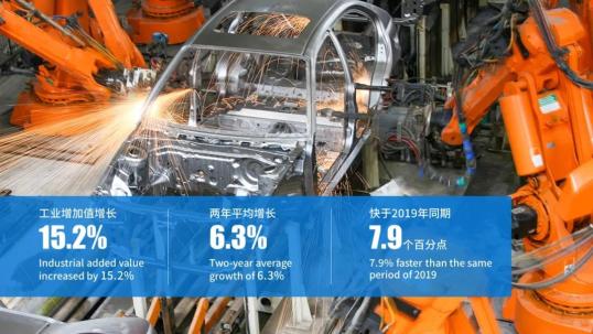 一是产业增长强势恢复。聚焦重大项目建设,前三季度工业投资持续快速增长,支撑工业增加值增长15.2%,两年平均增长6.3%,快于2019年同期约7.9个百分点。