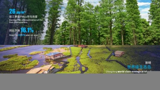 三是绿色、低碳、生态凸显城市品质。前三季度,全市PM2.5平均浓度为每立方米26微克,同比下降16.1%。在崇明世界级生态岛上举办第十届中国花卉博览会,园区总面积10平方公里,开启上海生态文明建设崭新图景。