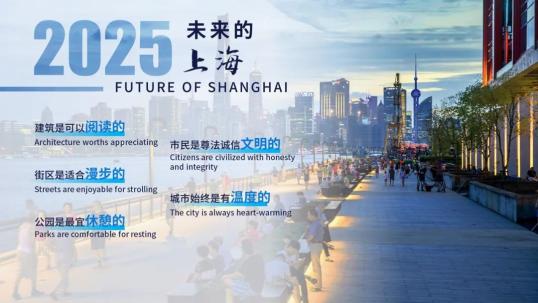 未来的上海,建筑是可以阅读的,街区是适合漫步的,公园是最宜休憩的,市民是尊法诚信文明的,城市始终是有温度的。