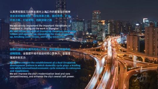 上海将认真贯彻落实习近平主席对上海工作的重要指示精神,科学把握新发展阶段,坚决贯彻新发展理念,服务融入新发展格局,全力推动高质量发展、创造高品质生活、实现高效能治理,坚定走好解放思想、深化改革之路,面向世界、扩大开放之路,打破常规、创新突破之路,着力强化“四大功能”、深化“五个中心”建设,加快打造国内大循环的中心节点、国内国际双循环的战略链接,全面提升城市能级和核心竞争力,全面增强城市软实力。