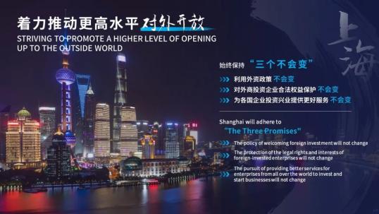 第二,着力推动更高水平对外开放。坚持在开放中强化内外资源链接、放大全球要素辐射,做到以开放促改革、促发展、促创新。上海将始终保持“三个不会变”,就是利用外资政策不会变、对外商投资企业合法权益保护不会变、为各国企业投资兴业提供更好服务不会变。