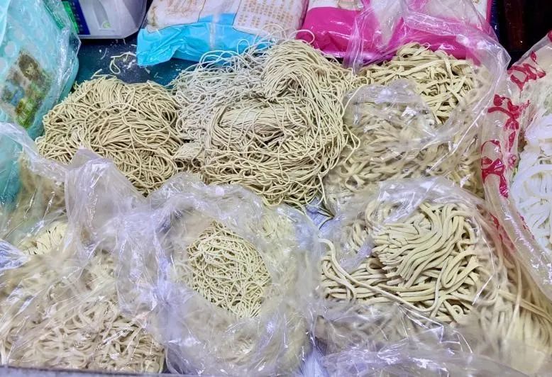 潮汕市场上常见的面条 | 作者 拍摄一般潮汕菜市场的面条有两种:精面和乌面,二者制作工艺相同,主要区别在于使用的面粉与切的样式、粗细不同。