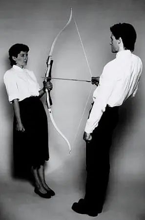 1980年《潜能》另一个作品《潜能》,他们依旧面对面,但两人中间放了一把弓和一支箭。玛丽娜从反方向握住弓臂,,让箭头指向她的心脏,乌雷在另一边往后拉着弓弦,他们的身体略向后倾斜,用拉紧的弓来制约平衡。如果一人摔倒、滑动或走神,玛丽娜就会被箭射死。