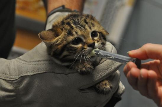 小黑足猫出生6天后眼睛就会睁开,8周大的时候体重虽然只有0.76千克。