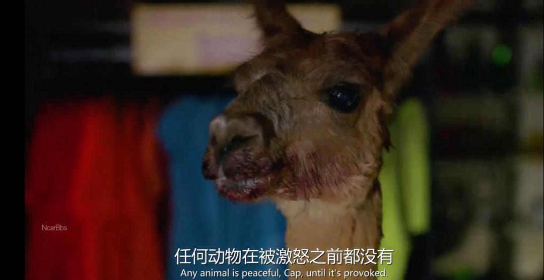 满嘴是血的羊驼一边打着响鼻,一边步步紧逼,眼看要被引开……