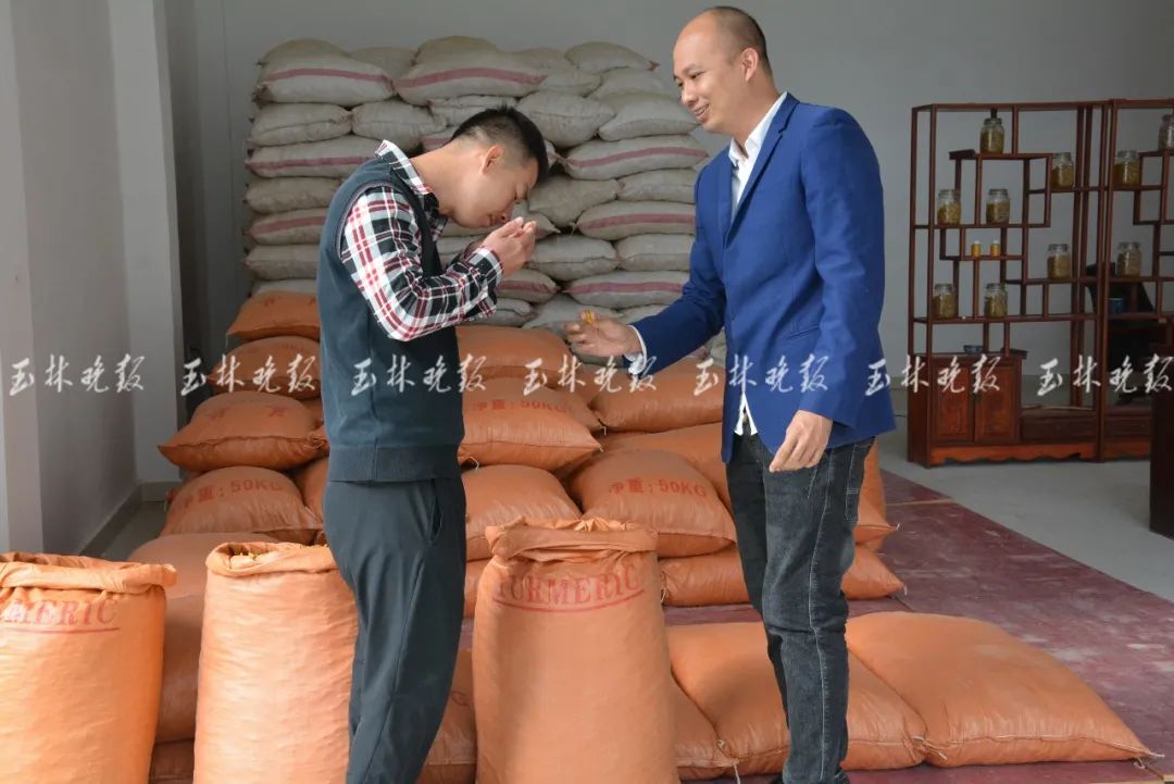 “市场10月29日集中开市,我们从27日就开始备货准备营业了。”经营姜黄生意的80后香料商刘开胜告诉记者。他来自广东省茂名市电白区,从最早的玉林火车站百货站一带的八角市场,到中药港,再到二环路附近的东盟香料市场,这次进驻玉林国际香料交易市场,是他们第四次搬迁。