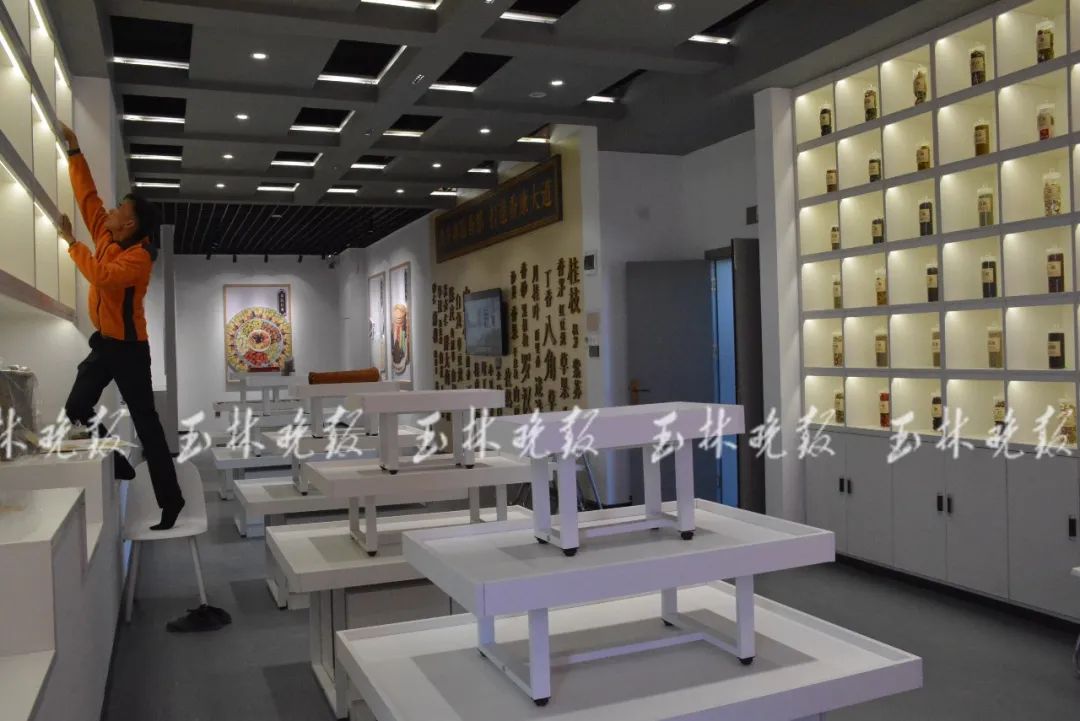 内部大厅十分宽敞同时,玉林香料科普展览馆的布展工作也已接近尾声。记者在该展馆内看到,整个展馆古香古色、韵味十足;展柜内放置有各色香料原材和产品供人参观;还打造了仿古造景——“制香坊”,方便参观者了解古时制作食药香料的工作和方法。