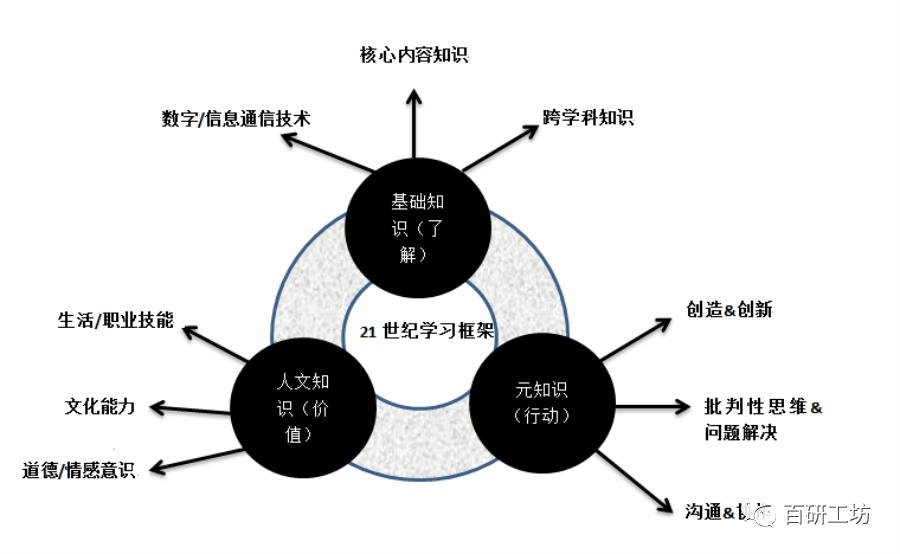 图1:21世纪学习框架21世纪的学习框架表明,基础知识包括三个主要组成部分,即核心内容知识、跨学科知识和数字/信息通信技术素养。基础知识是学生需要掌握的知识,以便他们有足够的知识。元知识是利用已有的基础知识进行工作的过程的知识。元知识的掌握可以通过创造力和创新、解决问题和批判性思维以及沟通和协作来体现。人文知识涵盖生活和职业技能、文化能力和道德/情感意识。人文知识提供了对学生自身及其在社会和全球社会范围内的地位的看法。