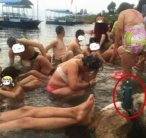 据媒体报道,最近有网友曝光:一群人带着洗发水在云南抚仙湖中洗澡。从照片上看,一位身着内衣的大妈正在湖中洗头,旁边还放有洗发水,周围的人都视而不见,也没有人劝阻和制止。
