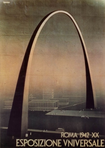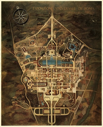 1942罗马世博会宣传海报,从中可以看到当年EUR的规划图。