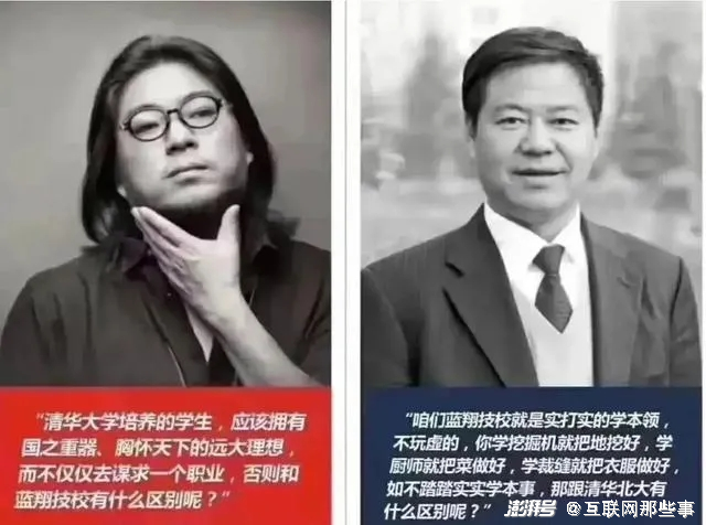 早在2014年,荣兰翔在接受环球人物采访时就曾放话“清华北大与蓝翔不可比”,不过当时他的言论并没有引发广泛的探讨,直到数年后,高x松在一档娱乐节目中,感慨“清华大学培养的学生应该拥有国之重器,身怀天下的远大理想,而不仅仅去谋求一个职业,否则和蓝翔技校有什么区别呢?”。