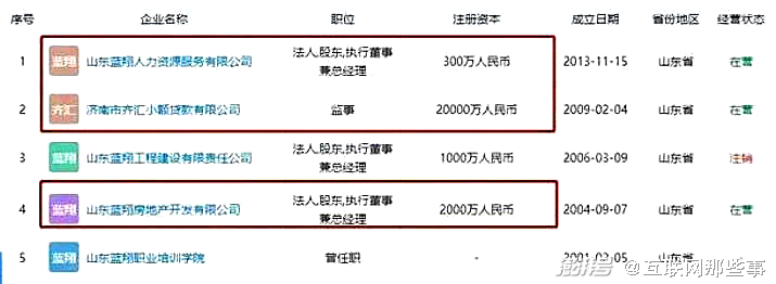 尽管没有公布具体的营收数据,但是能看到,没什么负债的蓝翔,小日子过得还不错,而荣兰祥更是身兼多家企业老板或高管,除了搞实业培训外,还一早布局金融赛道,名下有小额贷款公司,还持股济宁银行,加码地产投资,保守估计,身价超数十亿。