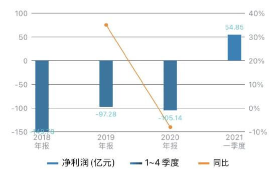从已公布的业绩上来看,滴滴在2018至2020年,营收分别为 1353亿元、1548亿元和1417亿元;净利润亏损分别为149.78亿元、97.28亿元和105.14 亿元。累计亏损超350亿元,直到今年一季度才实现扭亏为盈,营收为 422亿元,净利润约 55亿元。