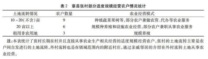 农业经营结构的调整同样是小农经济经营方式变革的重要方式之一。立足农村谋发展的新型农业经营主体,具有较强的动力进行农业经营结构的调整,以此获得更高的农业经营收益,比如当前农业经营中快速兴起的设施农业、农业新技术新品种的引进等,正是这部分新型农业经营主体所主导的。如下表2所反映的,农村社会分化中产生的适度规模经营的新型农业经营主体,通过经营规模和经营方式的自主调整,引领了当前小农经济的转型发展。