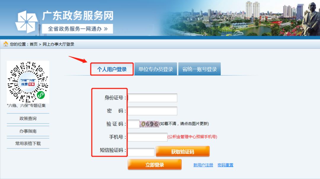 1.选择“个人用户登录”方式的,需输入身份证号、密码、验证码、手机号及短信验证码进行登录。
