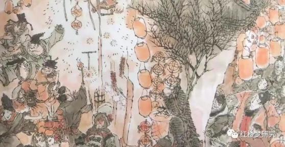 过元宵节,吃酒下棋自然是好的,但也绝不可能不赏灯看烟花。上一次描写的元宵节,借女眷们的眼睛,描述了狮子街灯市的繁华,那时的西门庆和他的女人们更多的是观赏者。这一次,西门庆不仅在楼上挂上了奇巧的羊角玲灯,还在街心放起了烟花。借着众人的眼睛,我们见识了西门大官人绚烂的烟火。上一次的花灯有多繁华,这一次的烟火就有多耀眼:一丈五高花桩,四周下山棚热闹。最高处一只仙鹤,口里衔着一封丹书,乃是一枝起火,一道寒光,直钻透斗牛边。然后,正当中一个西瓜炮迸开,四下里人物皆着,觱剥剥万个轰雷皆燎彻。彩莲舫,赛月明,一个赶一个,犹如金灯冲散碧天星;紫葡萄,万架千株,好似骊珠倒挂水晶帘。霸玉鞭,到处响亮;地老鼠,串绕人衣。琼盏玉台,端的旋转得好看;银蛾金弹,施逞巧妙难移。八仙捧寿,名显中通;七圣降妖,通身是火。