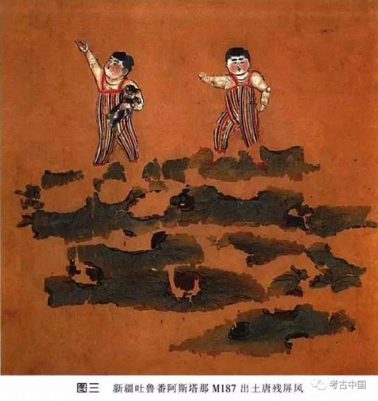 至于小童与兔子,则是旁逸斜出、可有可无的题材。文献记载,唐人张萱“好画妇人婴儿”。前述吐鲁番阿斯塔那M187绢画所见儿童,即与对弈的仕女等属同一屏风画,可知婴儿题材常与仕女相连属。