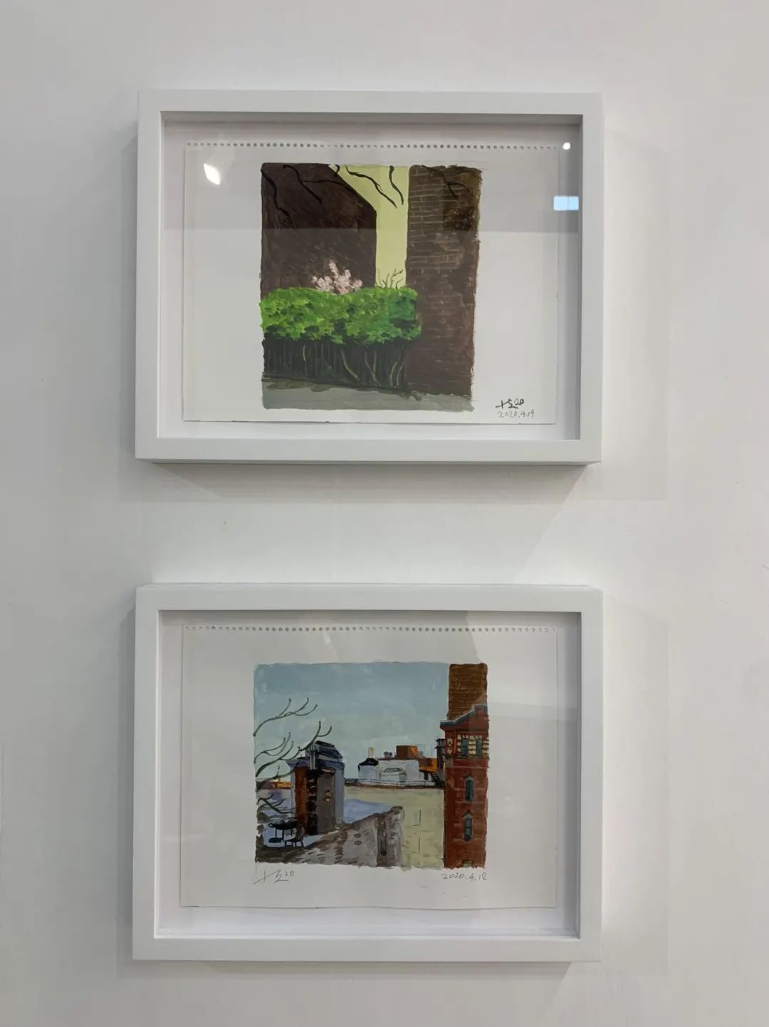 刘小东 Flowers between Walls Watercolour on paper 2020.4.14 32.4*41*4.8cm 2020刘小东 Afternoon from the Right Side of my Balcony Watercolour on paper 2020.4.12 32.4*41*4.8cm 2020