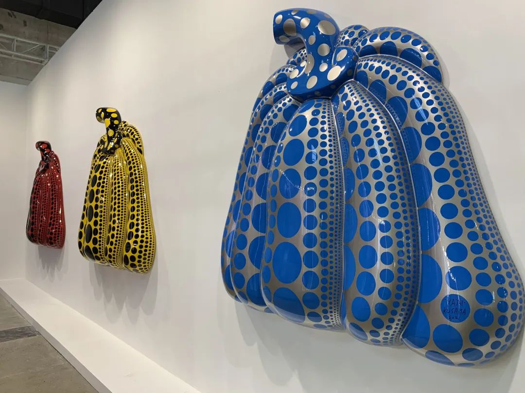 此次带来的三件草间弥生大型南瓜作品,每件价格120万美元,其中黄色作品已售,蓝色、红色作品已预订。