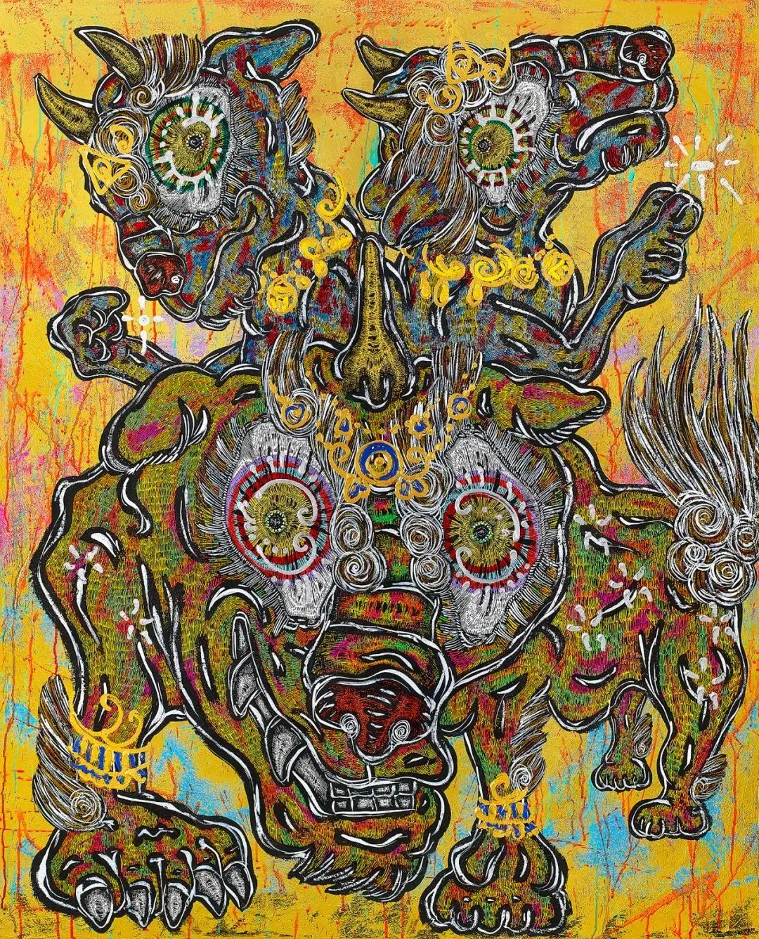 三个头的守护犬 2021年 丙烯画布 162.1 x 130.3公分已售