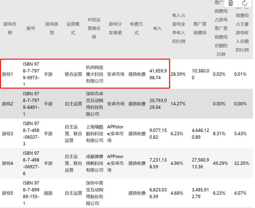 爆款游戏不太给力,中青宝在推广新游戏上,也较为吃力。比如2020年,排在中青宝游戏收入第四的《街头足球》(公司只披露了版号ISBN 978-7-498-06927-6,经虎嗅查询此款游戏为《街头足球》),推广营销费用达2756万元,占了当年游戏推广费用的49%,当年总销售费用的33%。