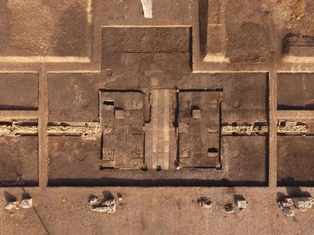 正是根据这条158度轴线,考古确认太子城遗址为一座长方形城址。“南北400米、东西350米,东西南三面城墙存有地下基址,墙外有护城河,南门外有瓮城。城内确认建筑基址72座,道路22条,排水沟4条……”黄信说,中轴线就好比城池的脊梁,一切布局皆围绕这条轴线展开。其中,最重要的9号建筑基址,正位于这条中轴线上,正对南门。经过分析,9号建筑基址为遗址内单体面积最大、磉墩最大、台基最高的建筑基址,推测应为遗址中规格最高的建筑。