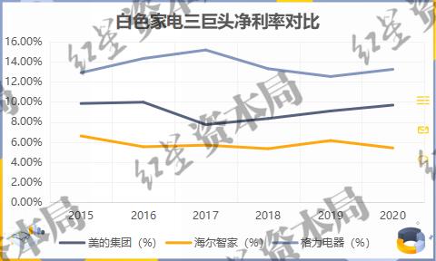 来源:公司财报、红星资本局这主要是由于去年疫情期间,格力电器的空调业务受到较大市场冲击;从另一方面,也说明格力电器产品较为单一使得企业抗风险能力更弱。而美的与海尔由于产品更多元化发展,同时布局全球化市场,因此两家企业抗风险能力也相对更强。
