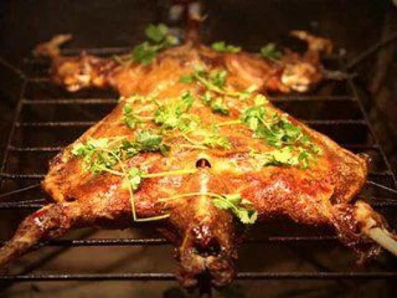 烤全羊是目前肉制品饮食中最健康最环保最绿色的美食了,外表金黄油亮,外部肉焦黄发脆,内部肉绵软鲜嫩,羊肉味清香扑鼻,颇为适口,别具一格。