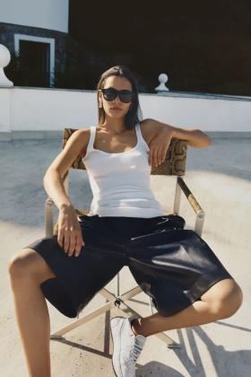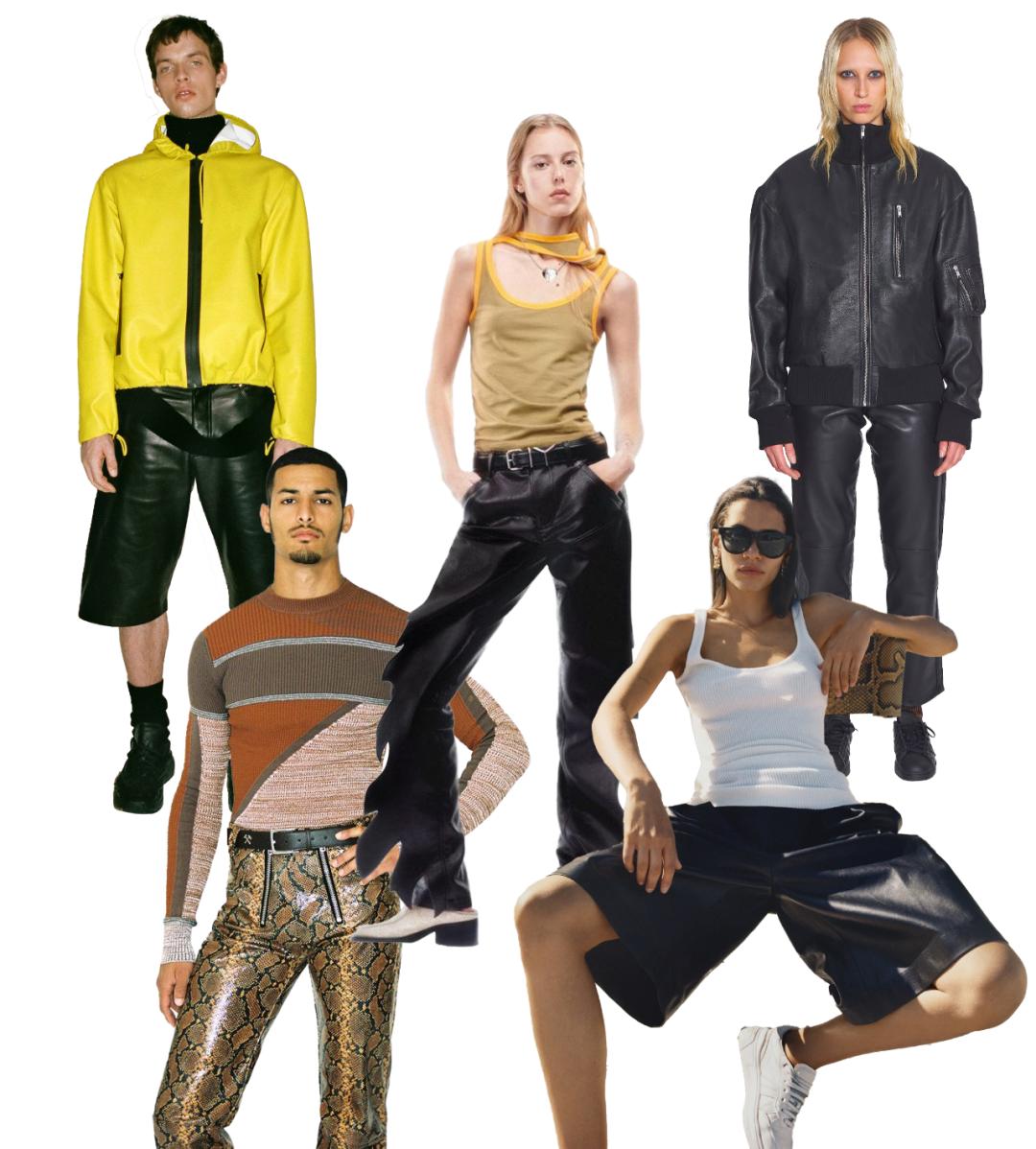 可以选择直筒、宽松版型的皮裤,或皮短裤。