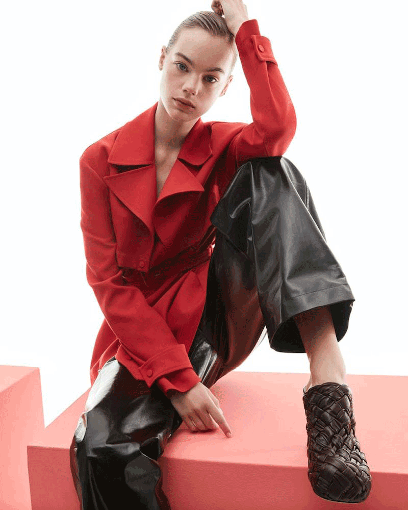 因此2018年,当刚刚入驻Bottega Veneta的Daniel Lee(现在已是前任)巧妙利用品牌DNA中的皮革元素,放宽皮裤的廓形,还推出皮短裤,将它穿在自信潇洒的独立女性身上时,艳俗感悄然无踪,强大的气场却丝毫不减,着实令人耳目一新。