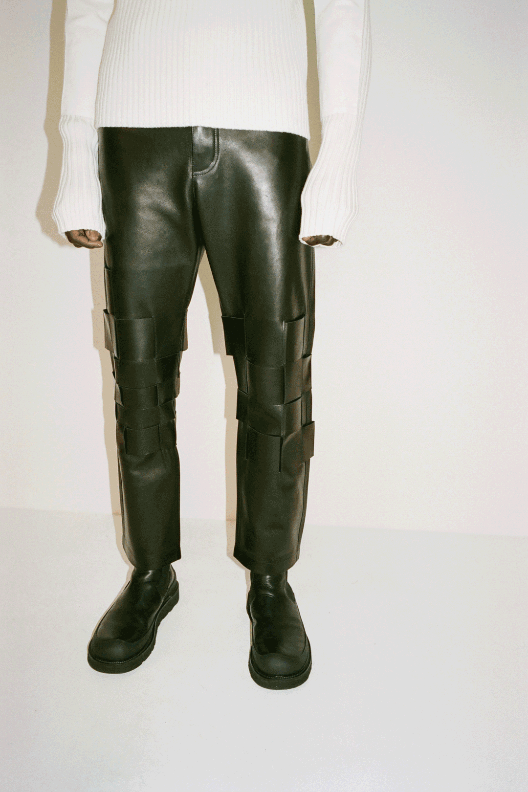 不刻意强调曲线、没有多余的装饰,无性别设计的BV皮裤给男人穿,也应该任谁看都会觉得十分合理。