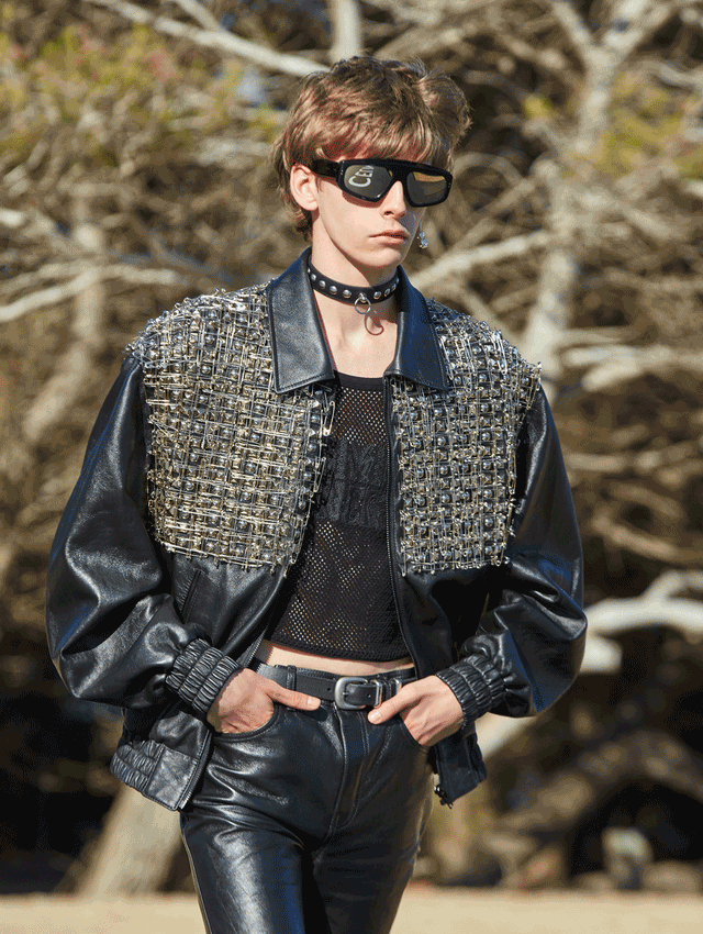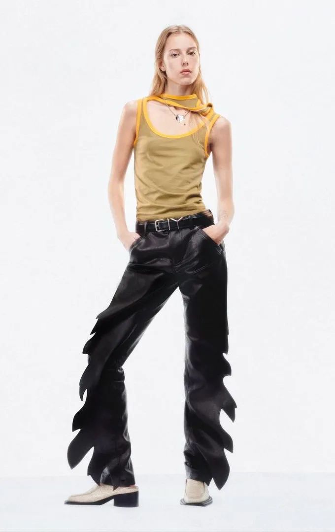 同样风头正盛的Y/Project,把品牌标志性的西部元素和解构手法用在了皮裤上,勾勒出一个更加狂野不羁、性感时髦、男女都能驾驭的当代牛仔形象。