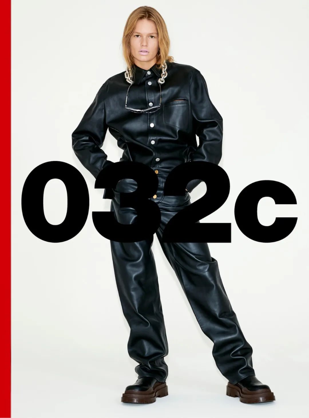 超模Anna Ewers身穿BV皮革套装登上《032c》