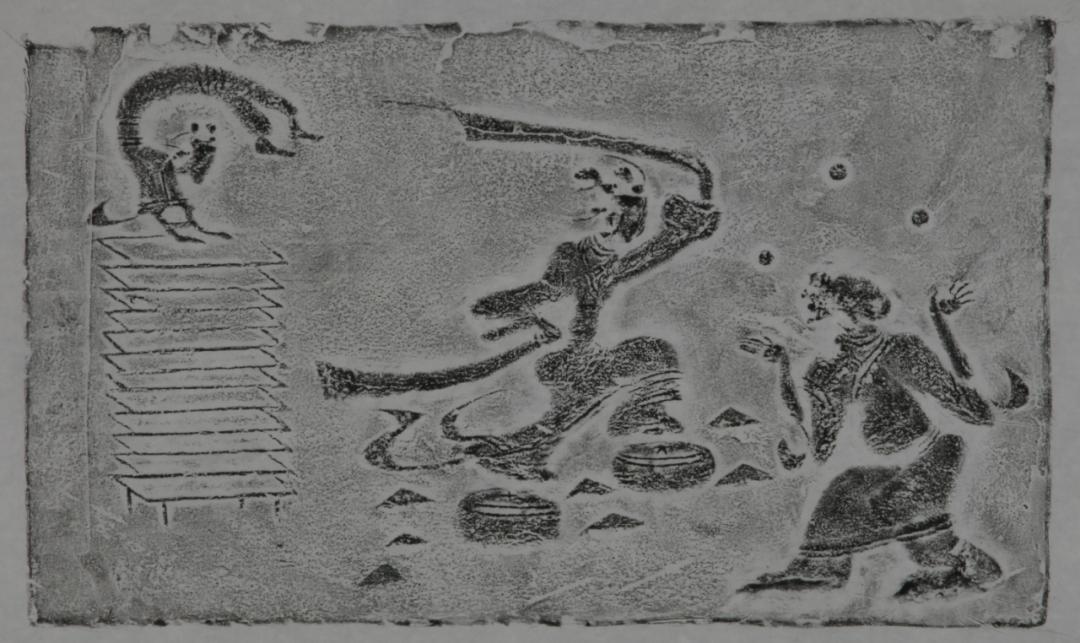 东汉 七盘舞杂技画像砖(拓片) 四川博物院藏隋唐百戏以杂技表演为主,伴有乐舞,并综合了其他一些艺术形式,具有很强的观赏性。皇帝陛下的生日宴会、四时八节的庆典活动,乃至平常日子的平常地点,都有可能见到百戏艺人的身影。
