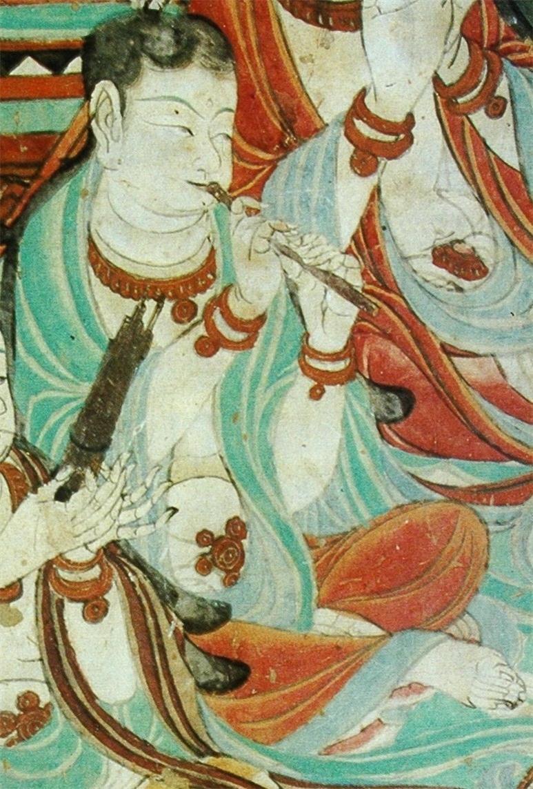 中唐 榆林窟第25窟南壁 吹筚篥艺人不过,这类以“刀枪不入”为看点的百戏,因为过于惊险恐怖,与中国人崇尚的“中正平和”大相径庭,曾招来不少非议。早在武德初年,就有大臣指出,吞刀吐火等奇幻演出“本非正声”,应当予以取缔。