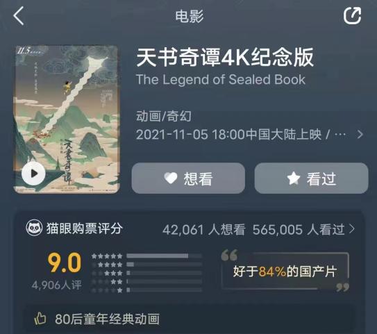 截至11月14日,猫眼购票平台上,上映10天的《天书奇谭4K纪念版》获得9分好评。近年来,但凡出一部基准线上的国产动画大片,就会引发一波“国漫复兴”的讨论。而此次,很多网友和评论对《天书奇谭4K纪念版》的画面、布景等等进行了考据,认为经典传统文化IP改编好了“真香”,发出了“回望巅峰,如今难望其项背”的感慨。当下的国产动画,技术上日趋成熟,为何对比早年动画“神作”,却总差着一大截?