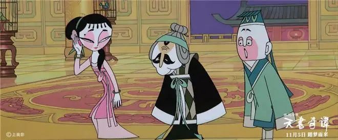 建构场景和意象方面,《天书奇谭》综合运用我国传统绘画工笔和水墨画技法。山水松柏等景色,通过大笔触的浓淡墨块造型,辅以线条结构,制造出一种水墨淋漓的效果。而到了亭台楼阁、雕梁画栋场景,则用工笔技法极尽雕琢,通过家具、鸟笼、餐具、花瓶等器物映射人物所属的不同阶层。园林景色包含人文志趣,踩高跷、舞龙舞狮等民间活动场景贴近故事情节,富有市井烟火气息。此外,锣、钹、高胡、木琴、拍板等民族乐器在影片里都有创新运用,它们作为音响、音效、音乐,烘托氛围、从侧面传达角色的主观情绪。
