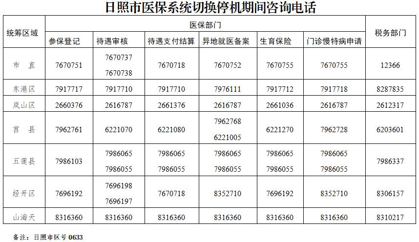 附件:日照市系统切换停机期间各经办机构咨询电话
